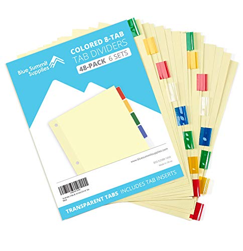 Title: Blue Summit Supplies 8-Tab Binder Dividers Manila Paper with Insertable Colored Plastic Tabs Reinforced 3 Ring Dividers with Perforated Paper Tab Inserts 6 Sets