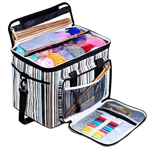 Title: BONTIME Knitting Bag - High Capacity Striped Yarn Storage Tote BagProject Bags with Roomy InteriorGreat for Organizing Everything You Need for Each of ProjectsLarge