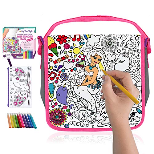 Title: Purple Ladybug Decorate & Color Your Own Messenger Bag for Girls with 10 Bright Markers Plus a Bonus Pencil Case - Great Gift Idea for Girl Fun DIY Arts & Craft Kit for Kids Creative Coloring Set!