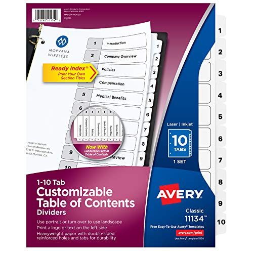 Title: Avery Ready Index Table of Contents Dividers White 10 Tabs 1 Set (11134)