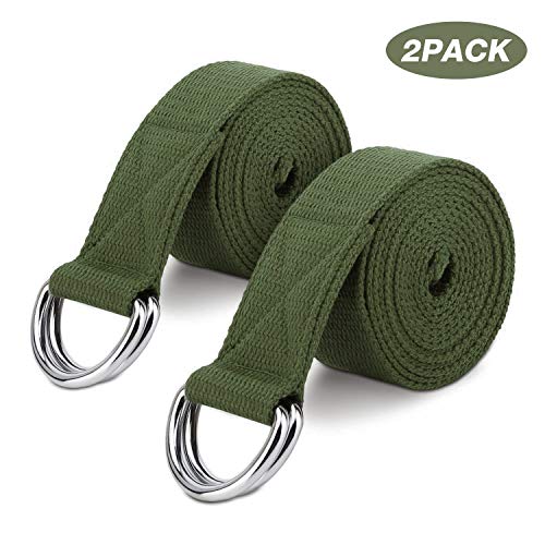 Title: MoKo Yoga Strap Belt [2 Pack] Stretching Exercise Fitness Bands 6ft Made with Durable Cotton Soft with Metal D-Ring Buckle Best for Holding Poses Physical Therapy Pilates Increase Flexibility Color:Army Green