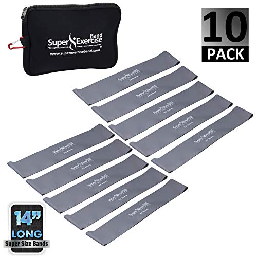 Title: Super Exercise Band USA 14' x 3' Extra Long Latex Free Mini Loop Bands in 3 5 10 Pack Sets. 10 Strengths for Resistance Training Stretching Yoga Pilates Toning. Plus E-Book and Zipper Carry Bag. Color:u. Gray XX HEAVY Loop Band 10 Pack