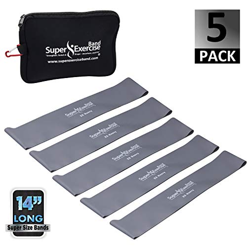 Title: Super Exercise Band USA 14' x 3' Extra Long Latex Free Mini Loop Bands in 3 5 10 Pack Sets. 10 Strengths for Resistance Training Stretching Yoga Pilates Toning. Plus E-Book and Zipper Carry Bag. Color:v. Gray XX HEAVY Loop Band 5 Pack