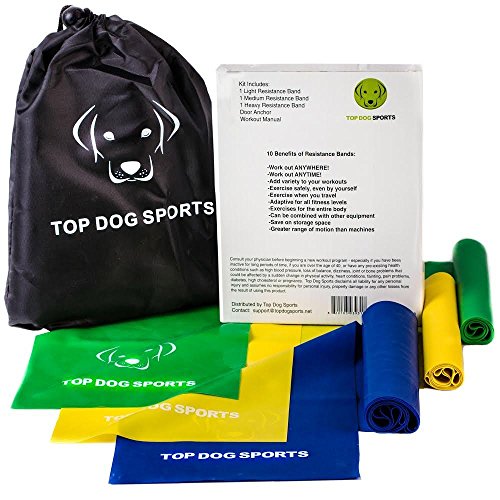 Title: Premium Exercise Resistance Band Set- Highest Quality Fitness Muscle Building Body Toning Work Out P90x Thera-bands Pilates Yoga Physical Therapy-Men & Women-ArmsLegsCoreAbsChestTraining- Light Medium & Heavy Bands + Door Anchor & Bag Included