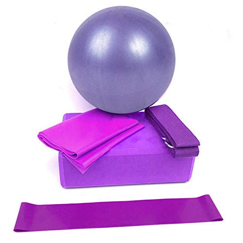 Title: JUFANGFIN 5 Pcs Yoga Beginner Equipment Sets Essentials Beginners Bundle Accessories Set Include Fitness Mini Ball Pilates Circles Blocks Physical Stretch Strap Resistance Loop Band Exercise Band Color:Purple