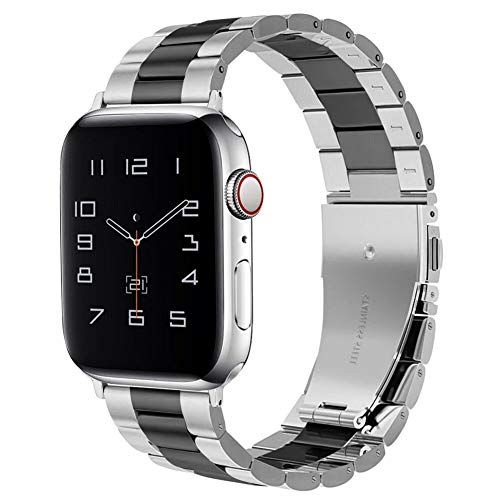 Title: Dsytom Compatible Apple Watch Band 42mm 44mm 38mm 40mm XL Large Metal Replacement Strap Compatible Apple Watch Series 5/4/3/2/1 Smartwatch(Silver/Black) Size:42mm/44mm Color:Silver/Black