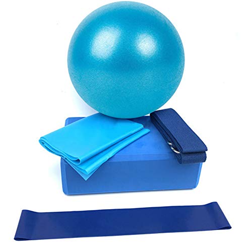 Title: JUFANGFIN 5 Pcs Yoga Beginner Equipment Sets Essentials Beginners Bundle Accessories Set Include Fitness Mini Ball Pilates Circles Blocks Physical Stretch Strap Resistance Loop Band Exercise Band Color:Blue