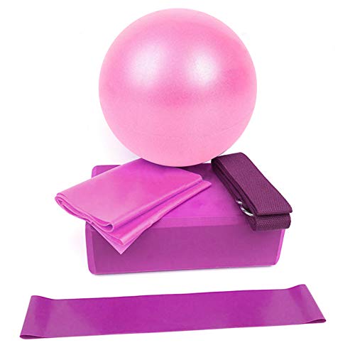 Title: JUFANGFIN 5 Pcs Yoga Beginner Equipment Sets Essentials Beginners Bundle Accessories Set Include Fitness Mini Ball Pilates Circles Blocks Physical Stretch Strap Resistance Loop Band Exercise Band Color:Pink