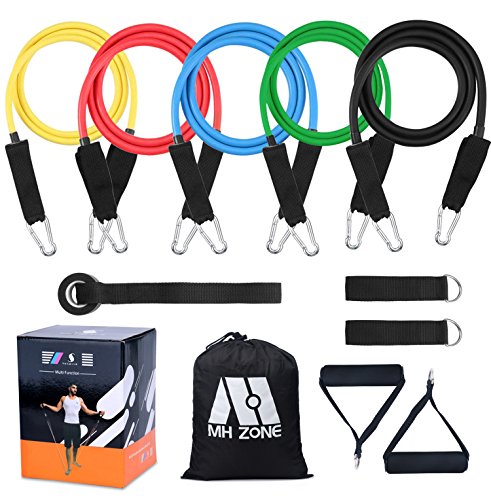 Title: MH Zone Resistance Band Set 11 (16) pc Resistance Band Set with 5 Exercise Bands Door Anchor and Legs Ankle Straps Fit for Resistance Training Home Gyms Workouts