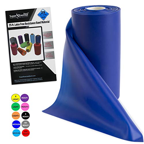 Title: Super Exercise Band USA Latex Free Resistance Bands in 816 and 24 Yard Bulk Rolls. 10 Elastic Strengths in Light Medium or Heavy for Training Physical Therapy Yoga Pilates Rehab Chair Workouts. Color:g. Blue MEDIUM -- 8 Yards