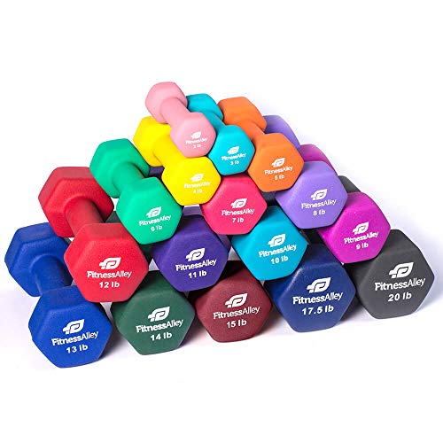 Title: Fitness Alley Neoprene Dumbbells - Free Weights Hex Hand Weights - Dumbbell Pairs Combo Set (16 Dumbbells (2 to 20 lbs))
