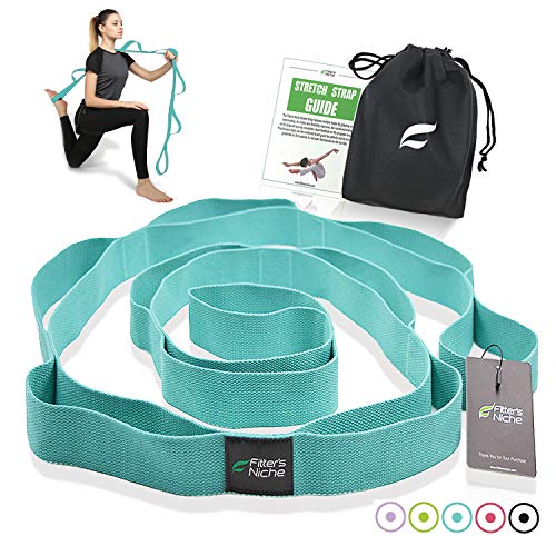 Title: fitter's niche Yoga Stretch Strap Non Elastic Exercise Band with 10 Loops Adjustable for Stretching Rehabilitation Flexibility Hamstring Physical Therapy Recovery Free Carry Bag and Workout Guide Color:Lakeblue