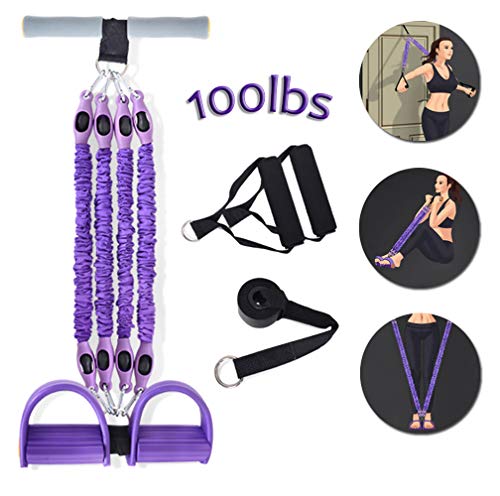 Title: Sunsign Multifunction 4-Tube Foot Pedal Elastic Pull Rope Stackable Resistance Band Kit with Fabric Covered for Exercise Heavy Stregth Workouts Fitness Physical Therapy Color:A