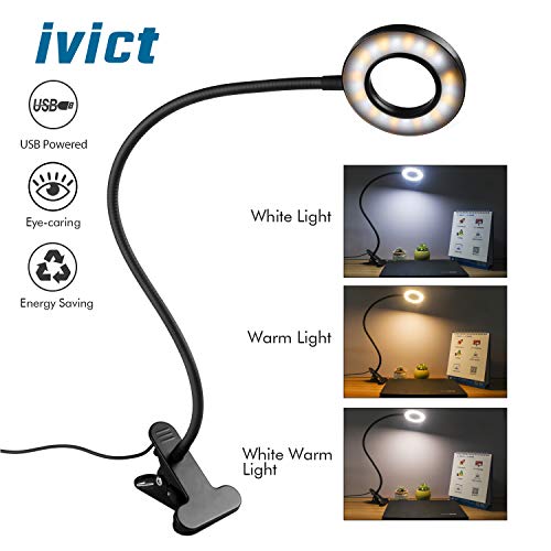 Title: Clip on Light Reading Lights - iVict 24 LED USB Book Clamp Light with 3 Color Modes 10 Brightness Dimmer and Auto Off Timer Eye Protection Kids Desk Lamp 360 ? Flexible Gooseneck Bed Night Light