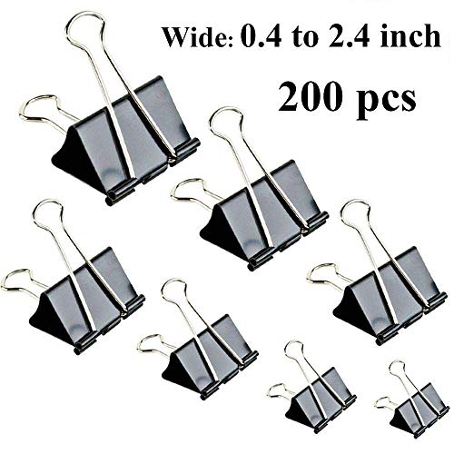 Title: 200 Pcs Binder Clips Paper Clamps Assorted 7 Sizes for Office Black - Size: 7 assorted sizes