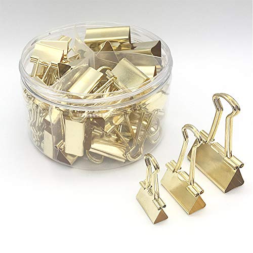 Title: Gold Binder Clips Paper Clamps Assorted 3 Sizes Set (1-1/4 inch 1 inch 3/4 inch) 42 Pack