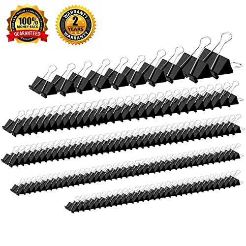 Title: YSeaWolf 152 Pack Binder Clips Assorted Sizes 6 Different Sizes of Multipurpose not Thin not Easy to Break Spring Tension Suitable Paper Clips Paper Clamps - Sturdy Container Included(Black)