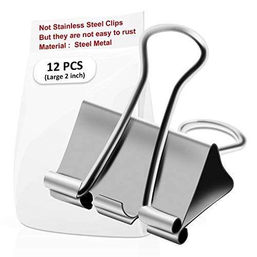 Title: Bright Color Binder Clips Steel Metal Binder Clips Paper Clamp Clips for School Work Home etc. Like a Stainless Steel Clips 1.25 in / 0.75 in / 2 in (2 inch / 50 mm 12 PCS) - Size: 2 inch / 50 mm Color: 12 Pcs