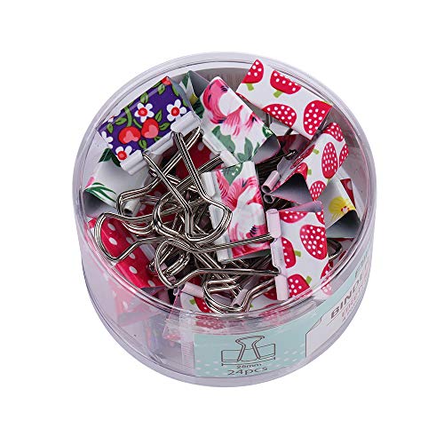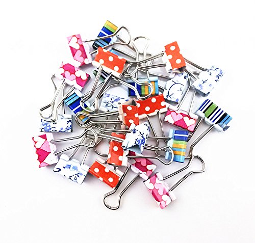 Title: yueton Pack of 24 Lovely Mini Printing Style Metal Binder Clips Paper Clips Clamps File Organizer