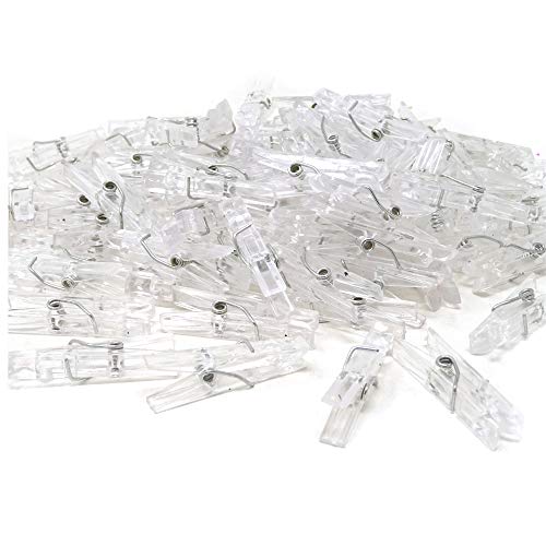 Title: yueton 100pcs Mini Clear Plastic Utility Paper Clip Clothespins Clip Clothes Line Clips