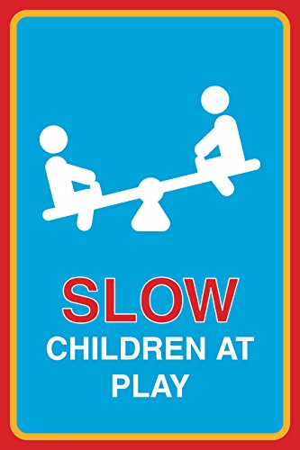Title: Slow Children At Play Print Kids Playing Balance Beam Picture Safety Playground School Home Road Street Sign - Size: 6 Pack