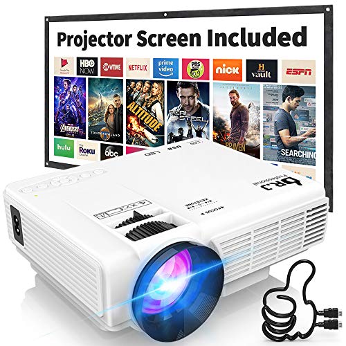 Title: DR. J Professional HI-04 Mini Projector Outdoor Movie Projector with 100Inch Projector Screen 1080P Supported Compatible with TV Stick Video Games HDMIUSBTFVGAAUXAV [Latest Upgrade]
