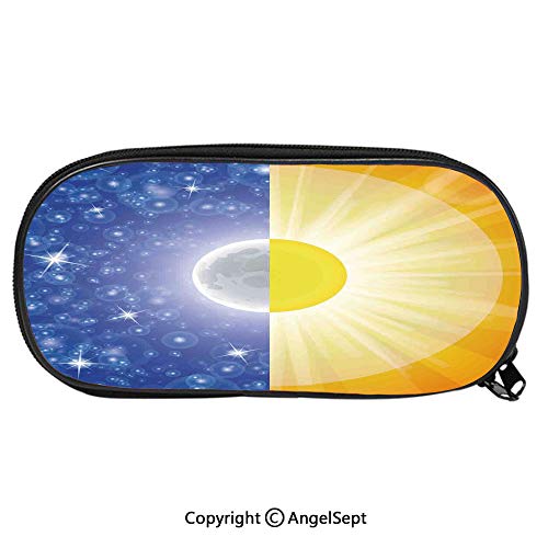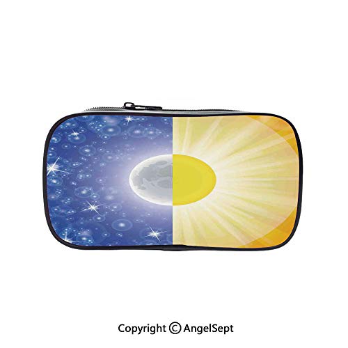Title: Pencil Case Students Stationery Apartment Decor Split Design with Stars in The Sky and Sun Beams Light Solar Balance Image Blue Yellow - Size: 8 x 3.5 x 1.5 in Color: Color_07