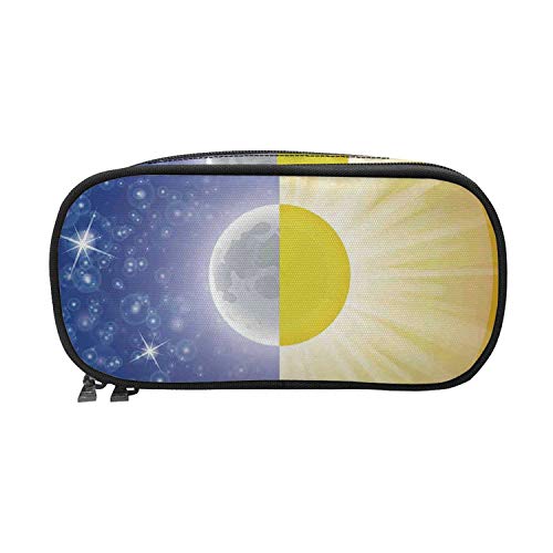 Title: Pencil CaseSplit Design with Stars in The Sky and Sun Beams Light Solar Balance Image for Pen Holder with Zipper Children Back to School Big Capacity Pencil Pouch Student Sturdy Polyester Stationery