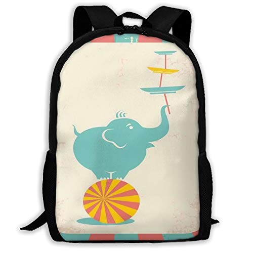 Title: Adult Travelc Laptop BackpackGrungy Background With Rays Of Beams And Elephant Holding Plates Standing In BalanceCollege School Computer Bookbag