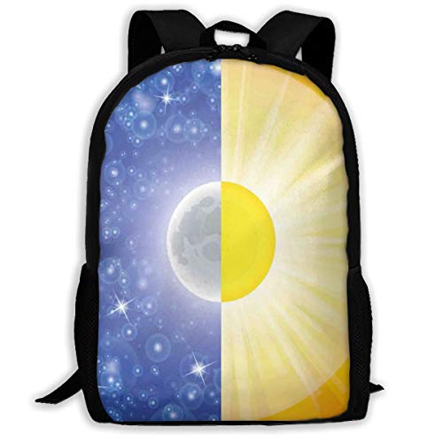 Title: Adult Travelc Laptop BackpackSplit Design With Stars In The Sky And Sun Beams Light Solar Balance ImageCollege School Computer Bookbag