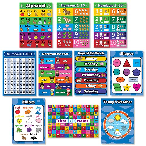 Title: Toddler Learning Laminated Poster Kit - 10 Educational Posters for Preschool Kids - ABC - Alphabet Numbers 1-10 Shapes Colors Numbers 1-100 Days of The Week Months of The Year Weather Chart