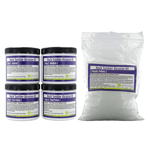 Title: WireJewelry 4 Step Rock Tumbler Abrasive Grit and Polish Kit with Plastic Filler Pellets 5 Batches Size:4 Step (5 Batch)